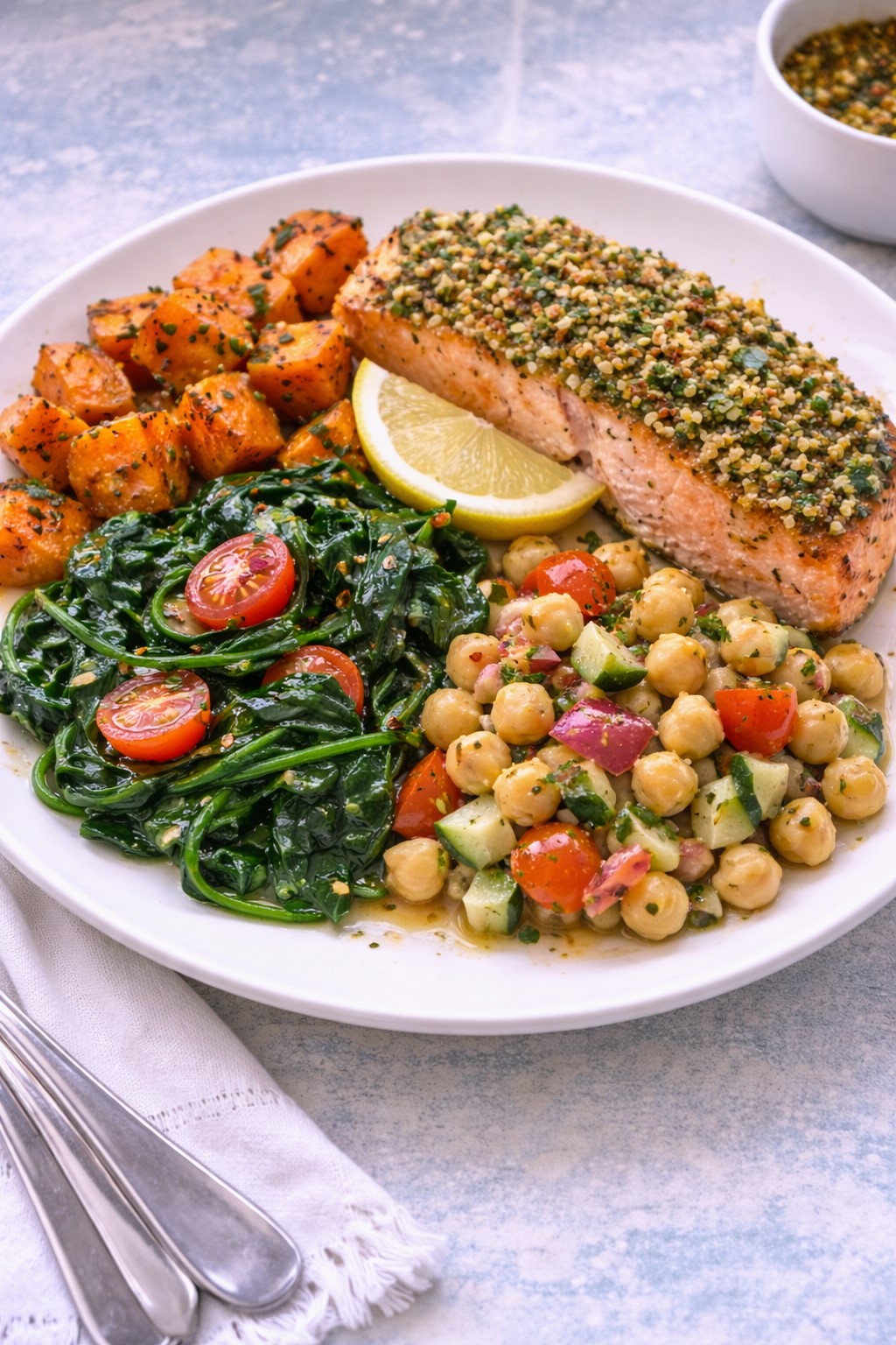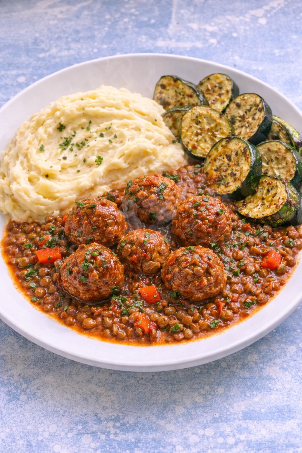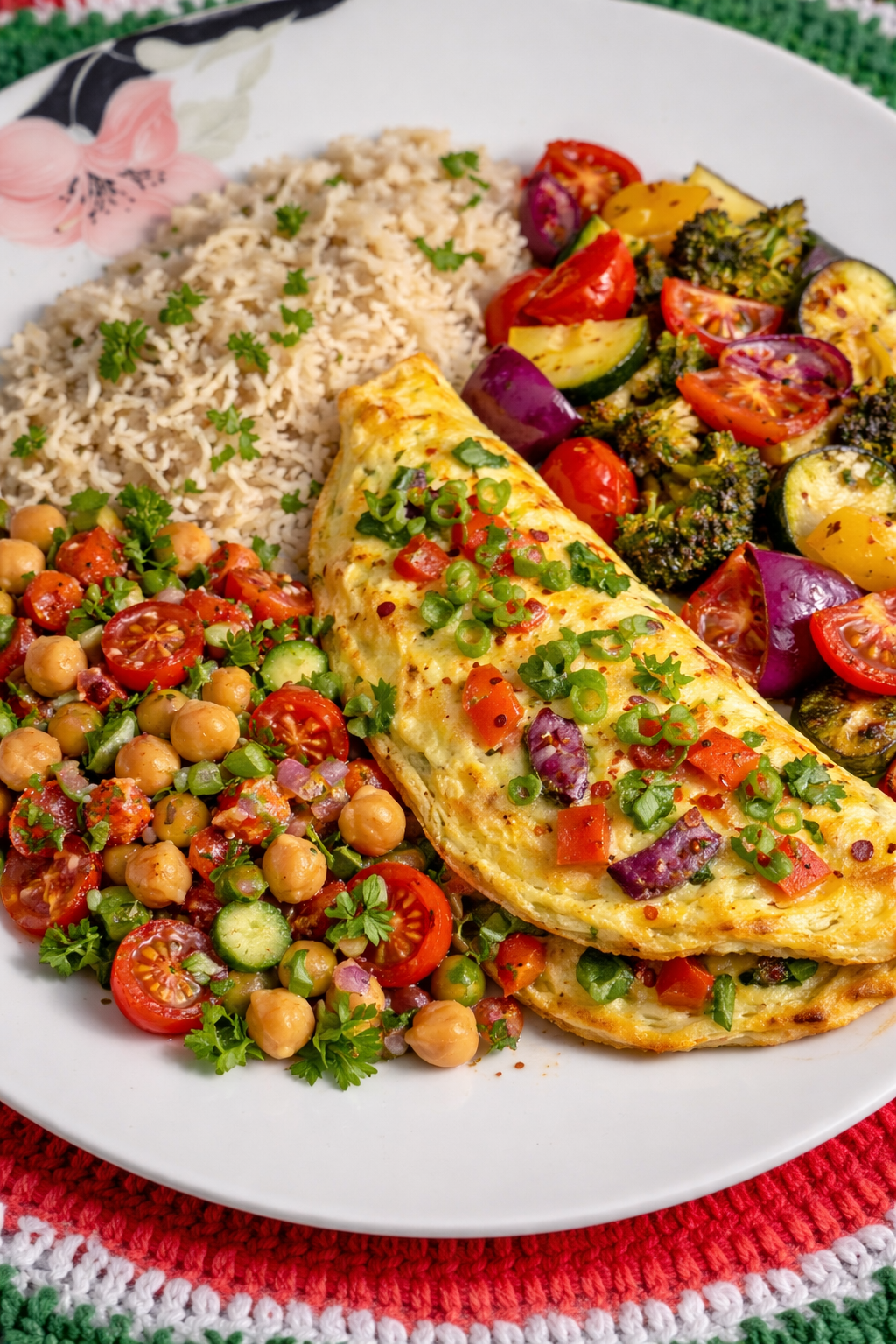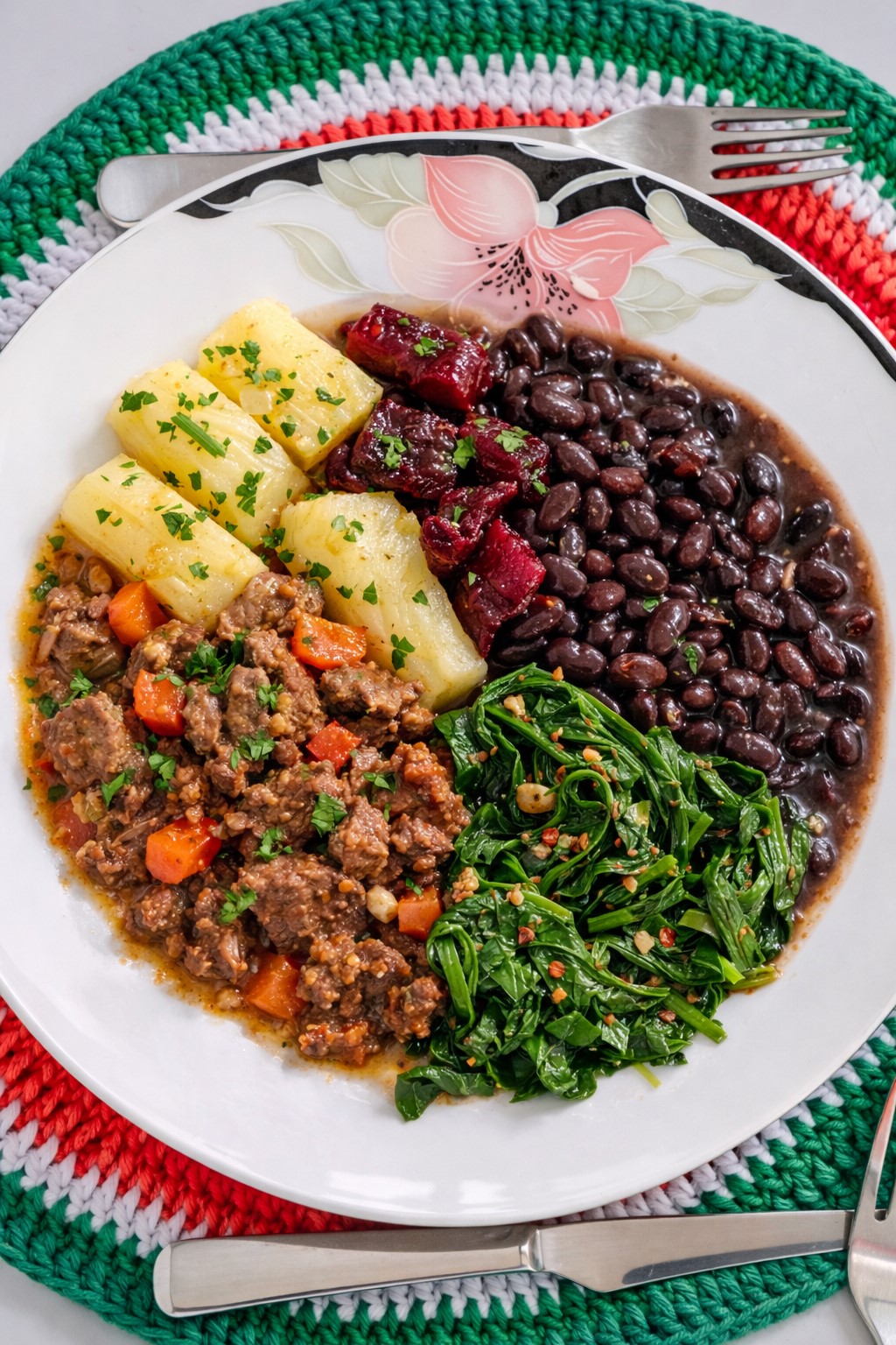 All meals are approximately 500g per portion and structured with vegetables, grains or roots, and legumes.