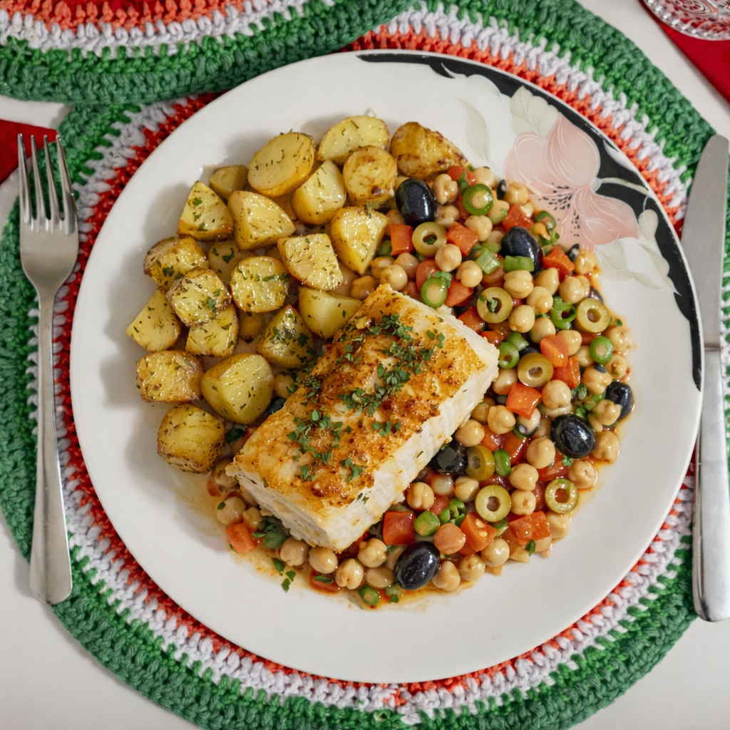 Vegetable & Cheese Filo pie with chickpea salad